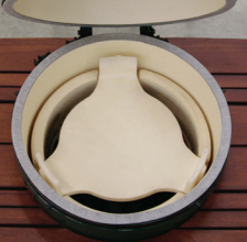 The design of the convEGGtor, in conjunction with the thermal properties of the EGG, allows heat to efficiently radiate within the Big Green Egg’s dome and prevents the direct flames and heat from overcooking the food.