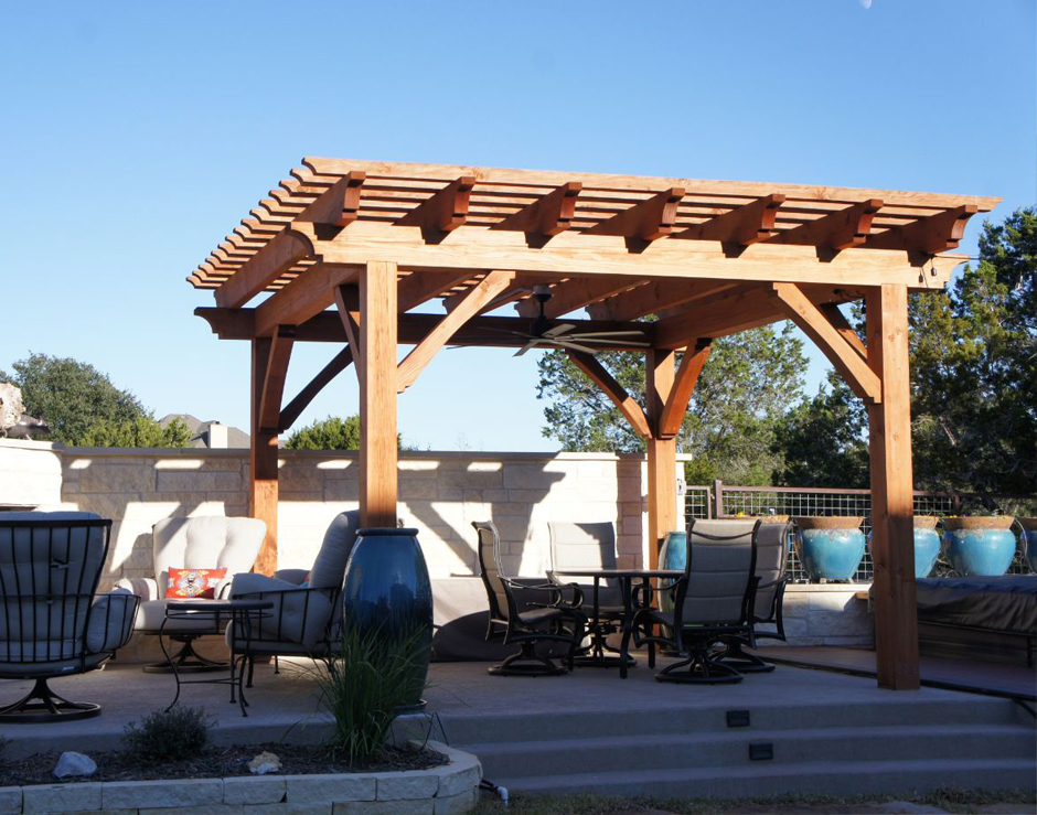 At HOMEFIELD we pre engineer every one of our pergolas and pre cut the timbers with a computer aided saw. This together with various timber framing influences such as mortise and tenon joinery, fully housed structural knee braces, and hidden hardware provide a level of craftsmanship that can’t be duplicated with typical “backyard carpentry”.